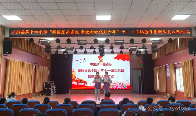 慧育在线/慧课学:10月13日上午,秋雨击窗,队歌嘹亮。正阳县第十四小学的礼堂,隆重举行“强国复兴有我 争做新时代好少年”庆祝中国少年先锋队建队76周年暨新队员入队仪式。一批朝气蓬勃的小小少年,光荣地加入了少先队组织!
