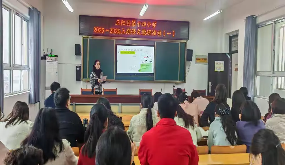 为精准落实语文学科新课标要求,深化单元教学实践,破解学科教学难点、提升课堂教学实效,助力教师专业成长。2025年10月23日上午正阳县第十四小学开展了语文学科专题教研活动---探究部编版语文阅读策略单元教学方法。全体语文教师齐聚一堂,以研促思,在思维的碰撞与实践的探索中,共同探讨阅读教学的新路径。