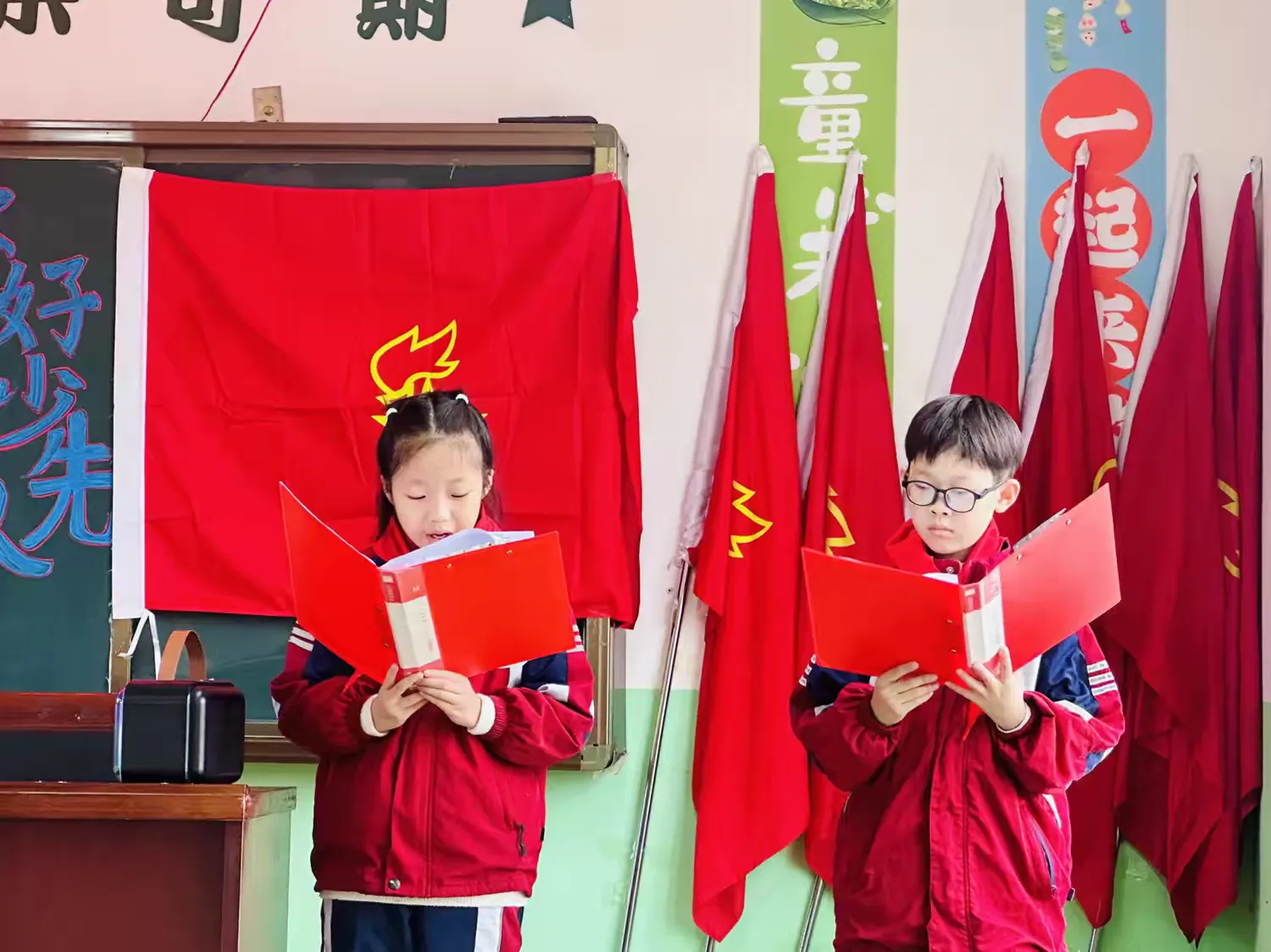 “我们是共产主义接班人,继承革命先辈的光荣传统。.”熟悉的《中国少年先锋队队歌》在报告厅回荡。新老队员们放声高唱,稚嫩的嗓音里饱含着对少先队组织的向往,更传递着“强国复兴有我”的坚定信念。