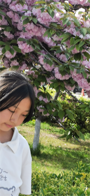 春风拂过,花瓣轻轻颤动,送来阵阵清甜的香气,混着泥土的芬芳,让人闻了就心旷神怡。清澈的小溪在桃林边潺潺流淌,小鱼在水里嬉戏,阳光洒在水面上,波光粼粼,和满树桃花相映成趣,尽显万般风情,诉说着春天独有的烂漫与温柔。我忍不住轻轻触摸那柔软的花瓣,指尖触到的是春日独有的温润。阳光透过花瓣的缝隙,洒下斑驳的光影,每一处细节都透着灵动的美。我蹲在树下,看着花瓣落在肩头、落在溪水里,仿佛整个世界都被这粉色的温柔包裹。这片桃林,是春天最动人的诗篇,是大自然写给人间的情书。