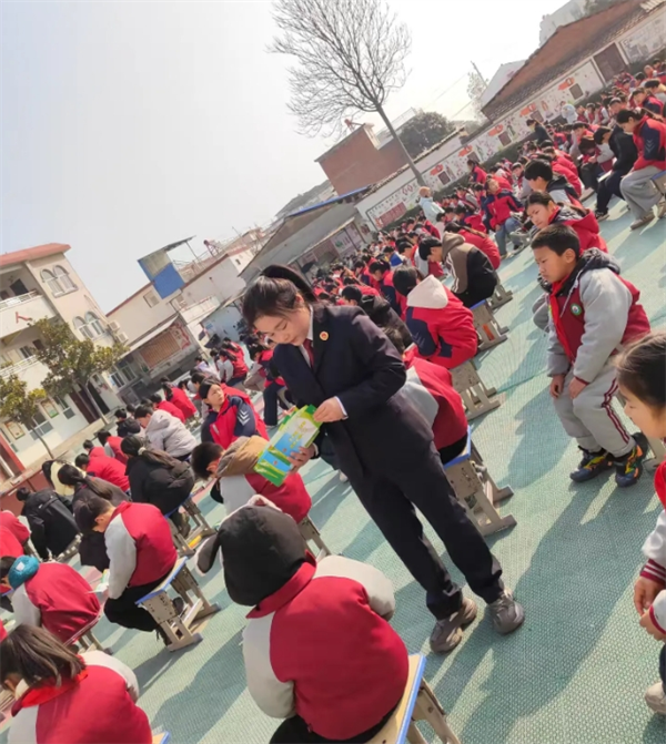 正阳县检察院的同志们在为学生宣传并耐心讲解
